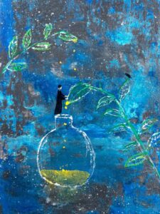 mona&近藤康平が30のテーマにそれぞれ香りと絵画を制作しそれを展示します。香りのボトルには近藤の絵によるラベルが使用されています。